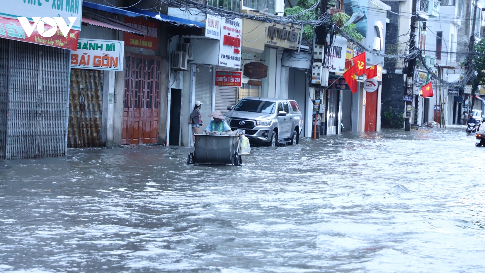 VOV.VN - Do ảnh hưởng của bão số 5, tại Hà Nội, mưa lớn kéo dài từ đêm qua, sáng nay, nhiều tuyến phố đã ngập sâu. Nhiều nơi khu dân cư rơi vào cảnh nước bủa vây.
