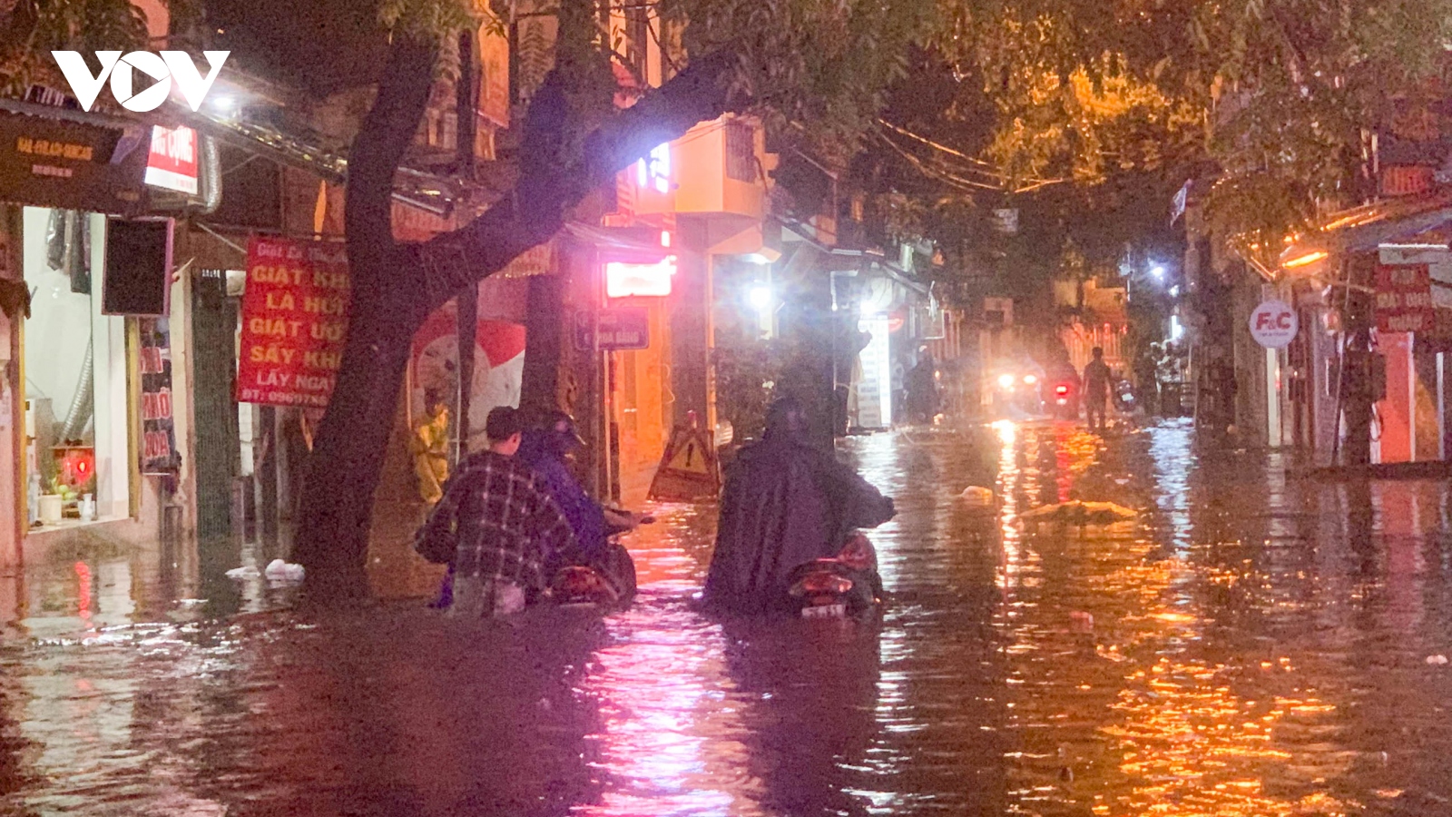 VOV.VN - Chiều tối 5/7, khu vực nội thành Hà Nội đã có mưa vừa, có nơi mưa to đến rất to, cục bộ có nơi mưa gần 250mm trong 2 giờ đồng hồ khiến nhiều nơi ngập sâu.
