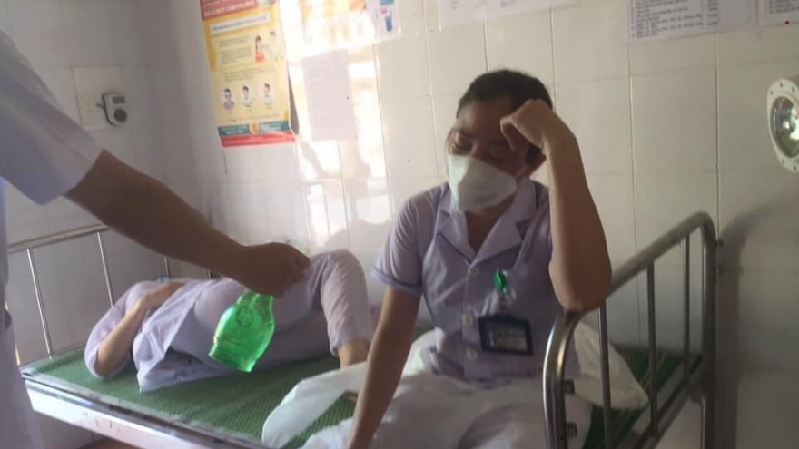 VOV.VN - Do phải mặc bộ quần áo bảo hộ kín mít, làm việc liên tục nhiều giờ dưới trời nắng nóng, nhiều ngày chưa được nghỉ ngơi, 3 nữ nhân viên y tế ở huyện Thuận Thành, Bắc Ninh kiệt sức, ngất xỉu.