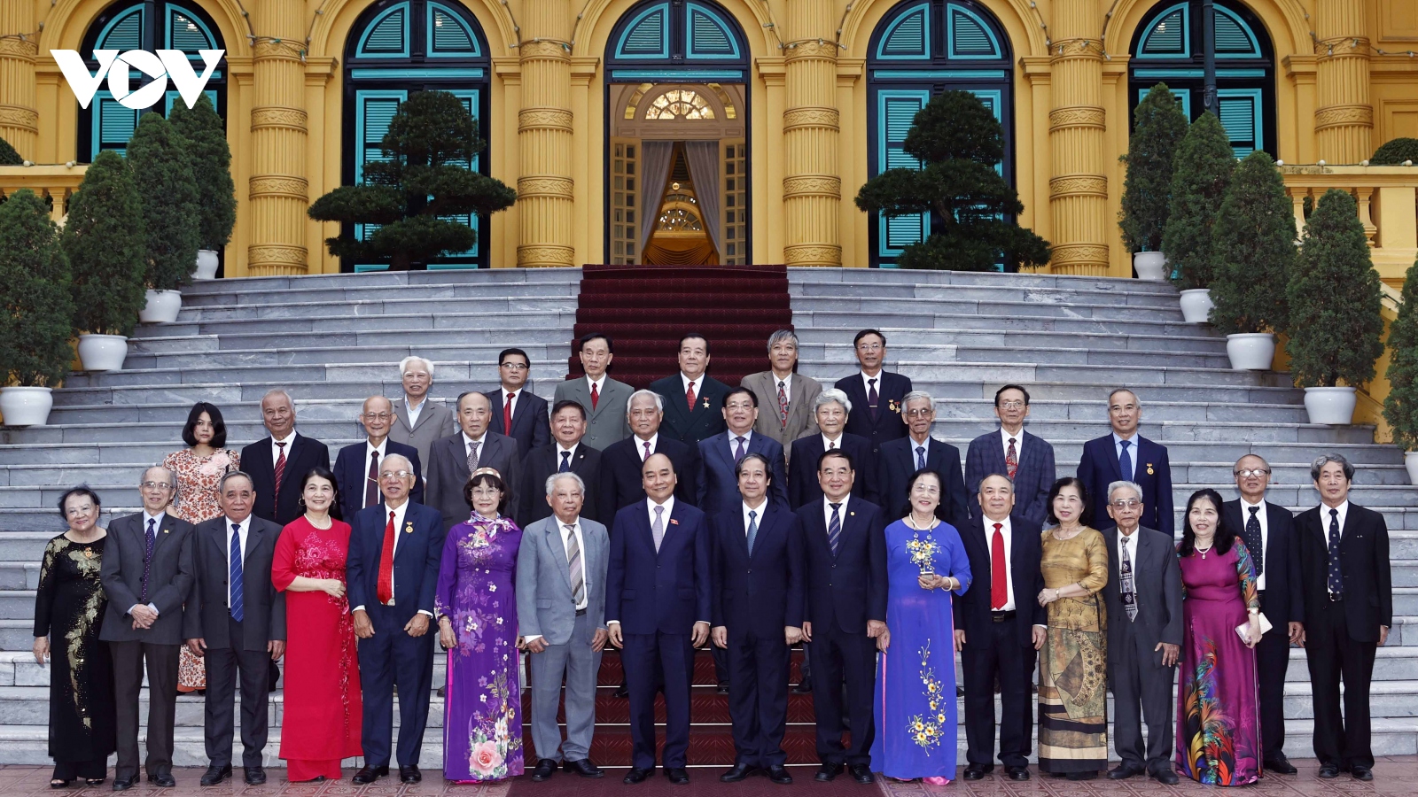 VOV.VN - Nhân kỷ niệm 40 năm Ngày Nhà giáo Việt Nam, chiều 15/11, tại Phủ Chủ tịch, Chủ tịch nước Nguyễn Xuân Phúc gặp mặt, chúc mừng đoàn 30 đại biểu các thầy cô giáo lão thành, các đại biểu đại diện cho Hội Cựu Giáo chức Việt Nam.