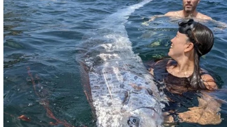 VOV.VN - Một nhóm người chèo thuyền kayak mới đây vô tình phát hiện xác một con cá mái chèo hiếm thấy trôi dạt trên bãi biển ở San Diego, bang California, Mỹ.