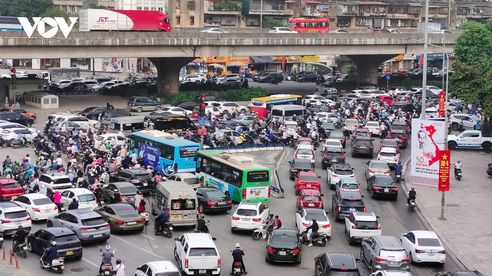 VOV.VN - Nhiều tuyến phố Hà Nội ùn tắc trong sáng đầu tiên trở lại làm việc sau kỳ nghỉ lễ 30/4 và 1/5. Trong khoảng thời gian 7 - 8h sáng, mật độ giao thông tăng cao, xe cộ “chôn chân” trên đường khiến nhiều người mệt mỏi.