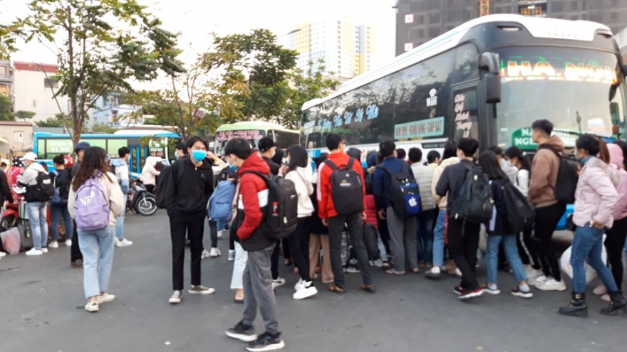 VOV.VN - Do nghỉ Tết dương lịch kéo dài tới 3 ngày, nên trong ngày hôm nay (31/12), lượng khách đổ về bến xe Giáp Bát để mua vé về quê nghỉ Tết khá đông.