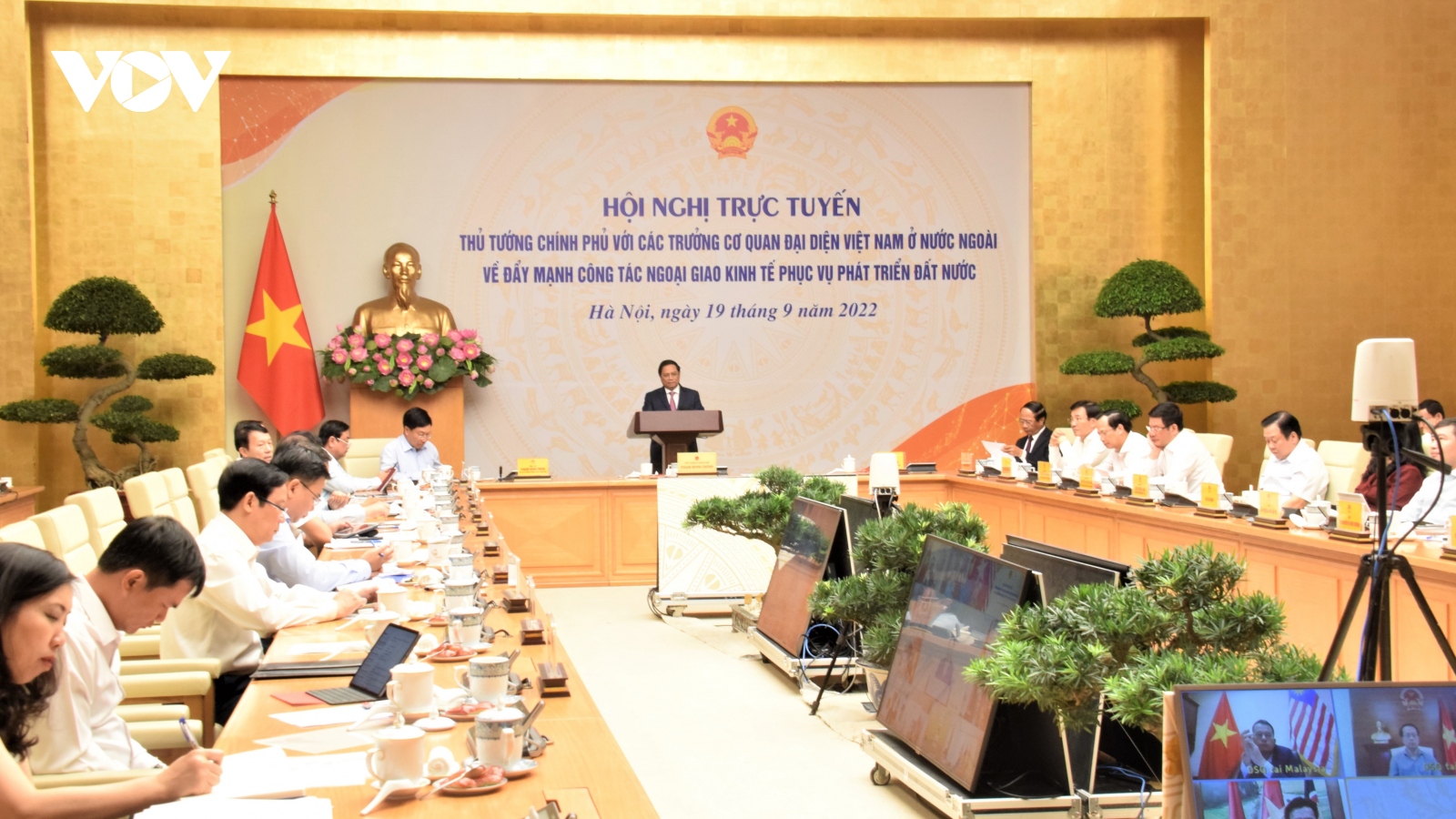 VOV.VN - Chiều tối 19/9, tại Trụ sở Chính phủ đã diễn ra Hội nghị trực tuyến của Thủ tướng với các Trưởng Cơ quan đại diện Việt Nam ở nước ngoài về đẩy mạnh công tác Ngoại giao kinh tế.