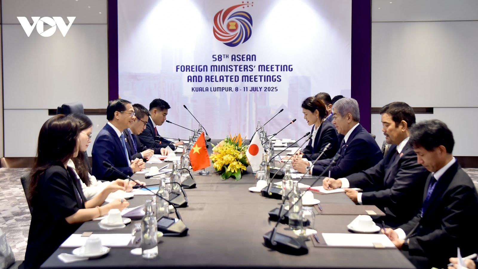 VOV.VN - Ngày 10/7, nhân dịp tham dự Hội nghị Bộ trưởng Ngoại giao ASEAN lần thứ 58 tại Kuala Lumpur (Malaysia), Phó Thủ tướng, Bộ trưởng Bộ Ngoại giao Bùi Thanh Sơn đã có các cuộc gặp với Bộ trưởng Ngoại giao Nhật Bản và Thụy Sỹ, thúc đẩy quan hệ song phương thực chất và hiệu quả.