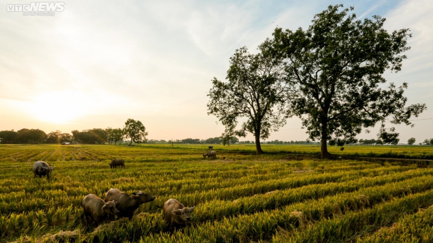 VOV.VN - Đầu tháng 6, những cánh đồng lúa thôn Thụy Khuê (Hà Nội) chín rộ, vàng ươm khiến nhiều người đi ngang qua phải thổn thức trước vẻ đẹp bình dị.