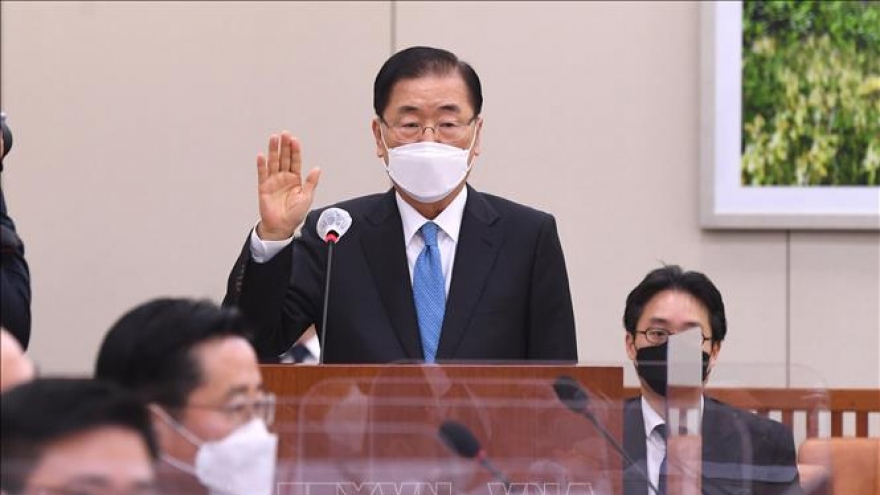 VOV.VN - Phát biểu tại lễ nhậm chức, ông Chung Eui-yong nhấn mạnh tình hình ngoại giao hiện nay đang rất khó khăn, tình thế quốc tế đang ngày càng bất ổn, đòi hỏi Hàn Quốc phải có chiến lược ngoại giao chủ động.