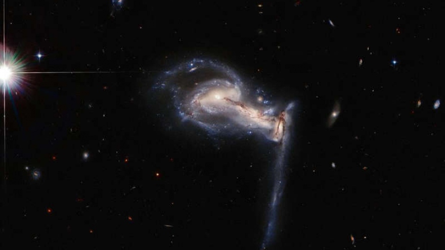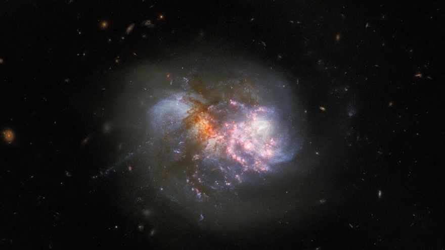 VOV.VN - Kính thiên văn Hubble đã ghi lại cuộc va chạm ngoạn mục của “những kẻ khổng lồ” trên bầu trời khi 2 thiên hà đang trong quá trình sáp nhập với nhau.