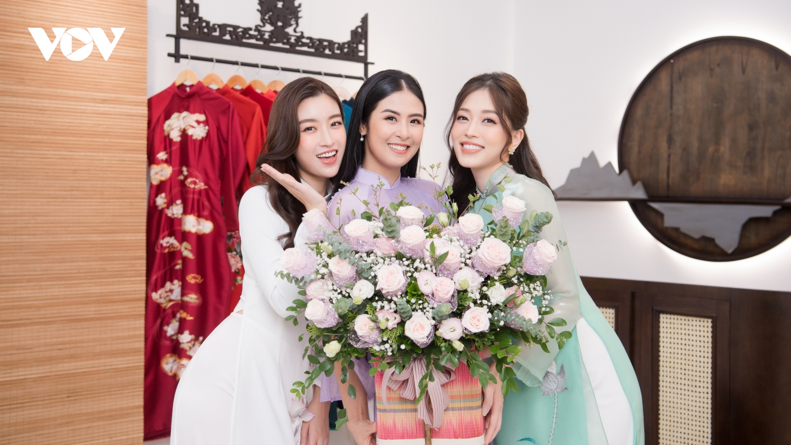 VOV.VN - Tại sự kiện khai trương cửa hàng áo dài mới vào cuối tuần qua của Ngọc Hân, hội ‘chị em’ hoa hậu như Hoa hậu Đỗ Mỹ Linh, Á hậu Tú Anh, Á hậu Hoàng Anh, Á hậu Trà My, Á hậu Phương Nga... đều gửi nhiều lời chúc tốt đẹp đến ‘chị cả’ của nhóm.