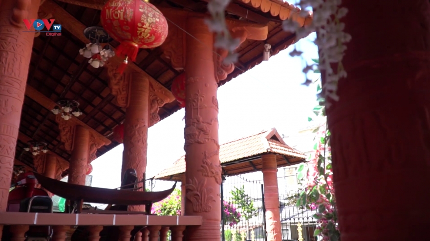 VOV.VN - Với tình yêu mãnh liệt dành cho dòng gốm đỏ đặc biệt của quê hương, chủ nhân của một ngôi nhà ở phường 5, TP. Vĩnh Long, tỉnh Vĩnh Long đã dày công lên ý tưởng và xây dựng nên một căn nhà làm bằng gốm độc đáo.