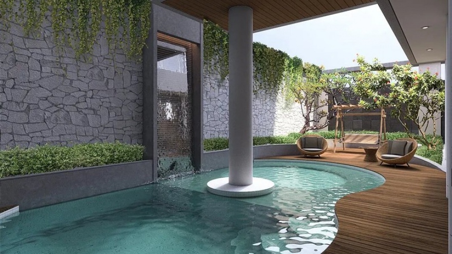 VOV.VN - Sau những tất bật, xô bồ ngoài xã hội, được trở về nhà thả mình trong làn nước trong vắt của hồ bơi vốn là ước muốn chủ nhân ngôi nhà phố 2 tầng này.