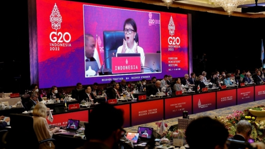 VOV.VN - Cuộc xung đột Ukraine và tác động đối với nền kinh tế toàn cầu đã phủ bóng lên Hội nghị Ngoại trưởng G20 trong 2 ngày họp tại Bali, Indonesia với hầu hết các nước thành viên kêu gọi sớm chấm dứt xung đột thông qua ngoại giao và đàm phán.