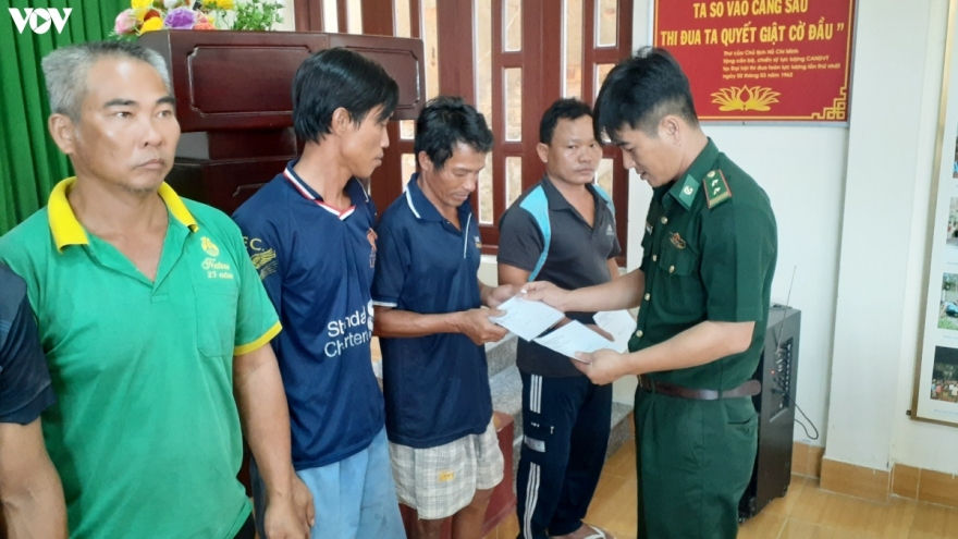 VOV.VN - Đồn Biên phòng Bến Đá, Bộ Chỉ huy Bộ đội Biên phòng tỉnh Bà Rịa-Vũng Tàu vừa tiếp nhận 14 ngư dân của tàu cá BĐ 95346 TS bị nạn trên biển vào bờ an toàn.