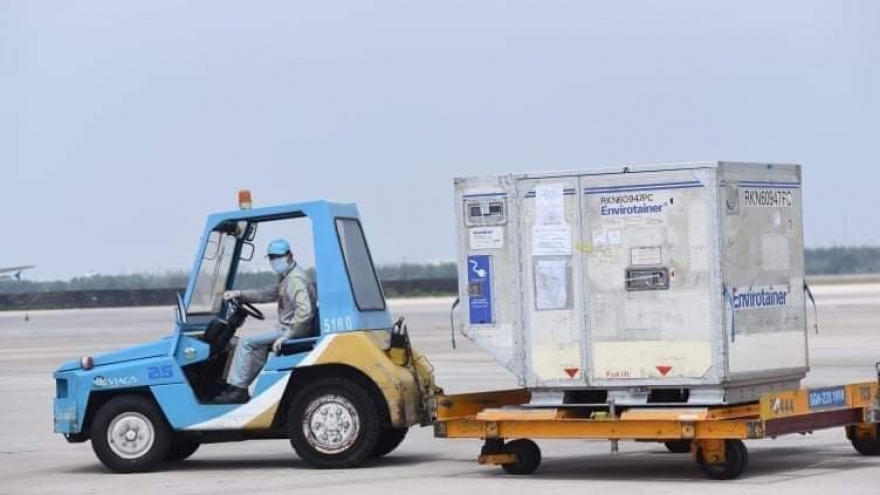 VOV.VN - Trưa nay (24/2), lô vaccine phòng dịch Covid-19 đầu tiên đã về tới Việt Nam qua Cảng hàng không quốc tế Tân Sơn Nhất – TP.HCM. Lô vaccine này gồm 117.600 liều, nằm trong đơn hàng hơn 200.000 liều được Bộ Y tế cho phép nhập khẩu đợt đầu.
