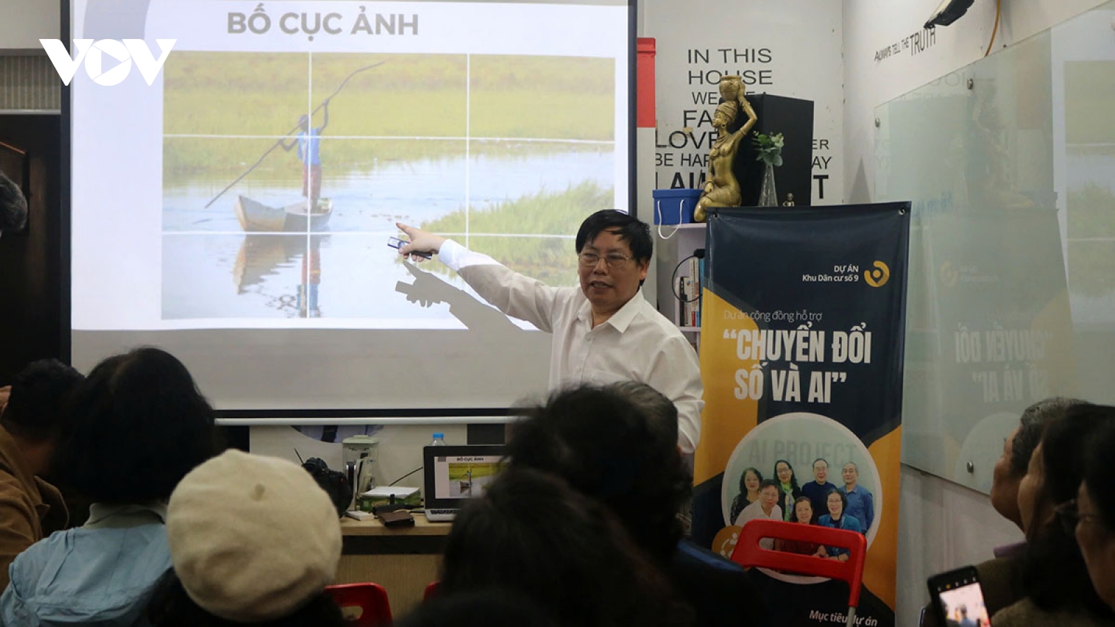 VOV.VN - Giữa lòng Hà Nội náo nhiệt, có một lớp học rất đặc biệt. Không bục giảng, không phấn trắng bảng đen, đều đặn mỗi tuần, căn nhà nhỏ nằm trong khu dân cư số 9, phường Dịch Vọng Hậu, quận Cầu Giấy, Hà Nội lại rộn ràng tiếng cười nói, trò chuyện của những học viên tóc đã điểm bạc xoay quanh chủ đề về chuyển đổi số