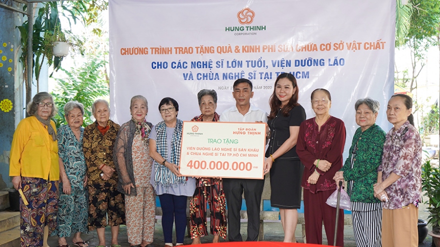 VOV.VN - Tập đoàn Hưng Thịnh đã trao nhiều phần quà cho các nghệ sĩ lão thành và hỗ trợ tài chính để tu sửa lại cơ sở vật chất tại Viện dưỡng lão nghệ sĩ hiện đang bị xuống cấp trầm trọng.