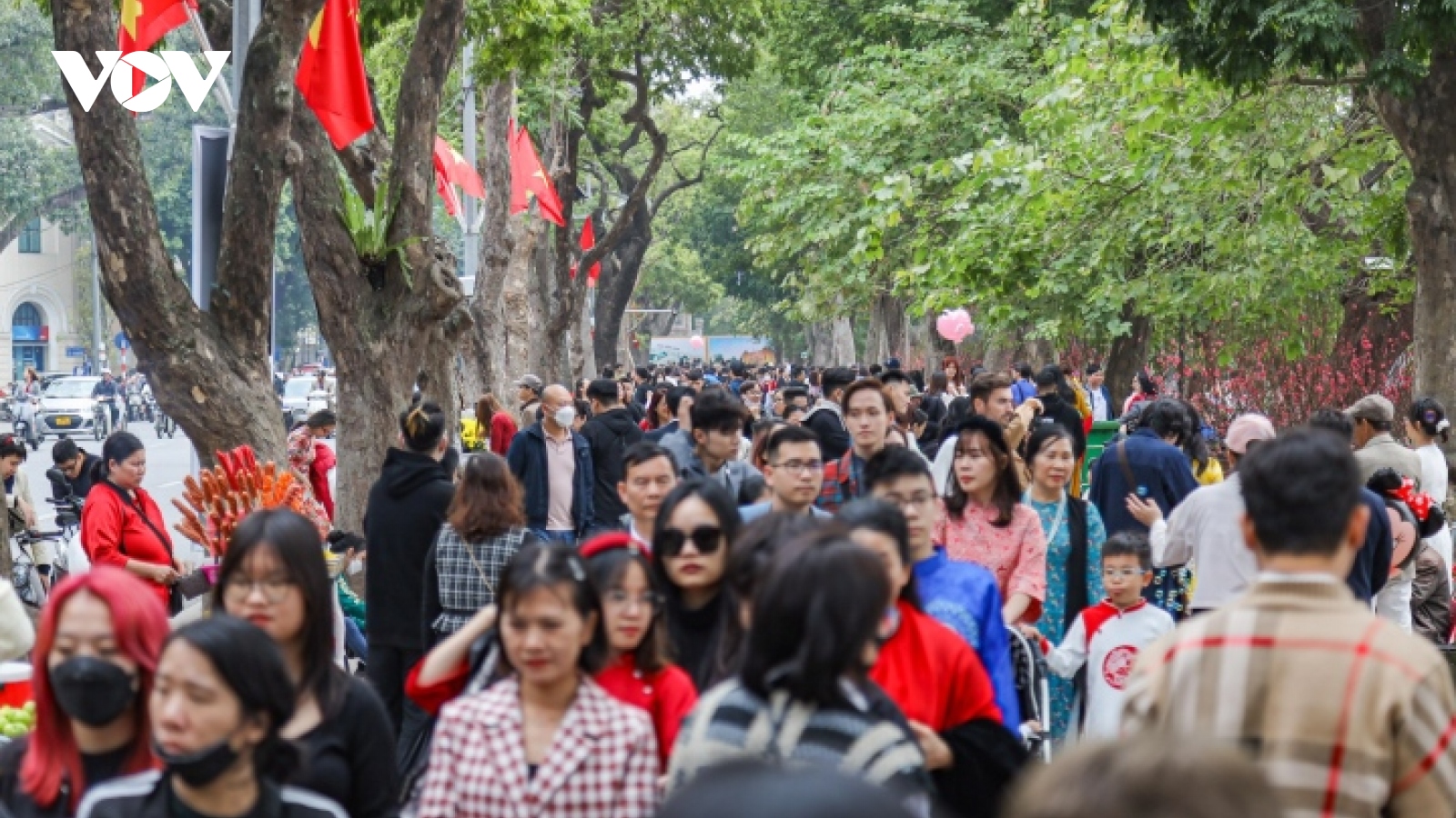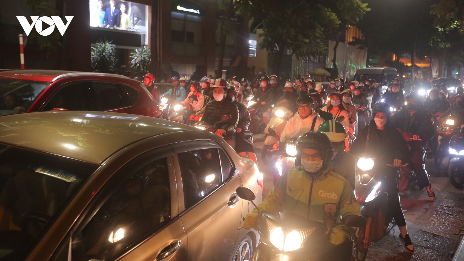 VOV.VN - Tối 24/12, các đường phố quanh khu vực hồ Hoàn Kiếm và khu vực trung tâm Hà Nội bị ùn tắc, đi lại khó khăn do rất đông người đổ ra đường chơi Giáng sinh.
