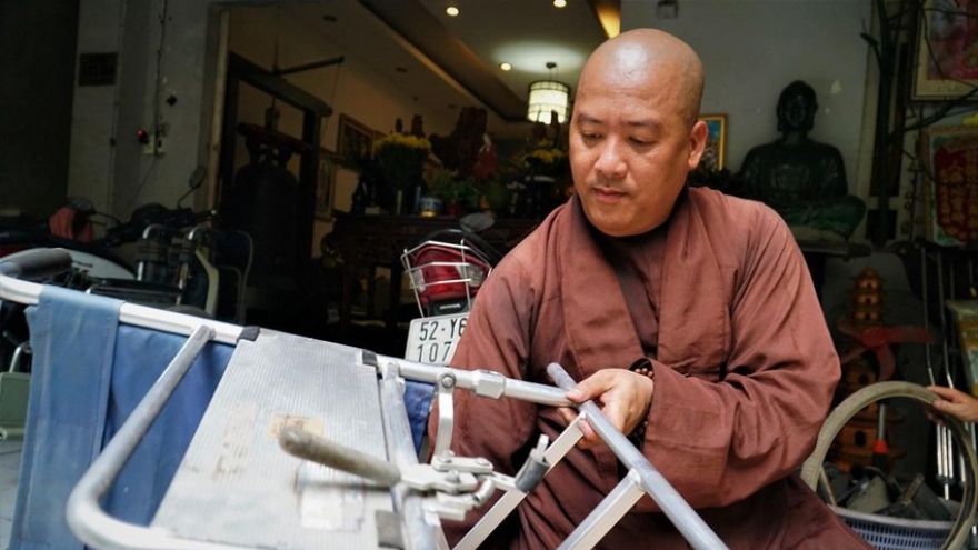 VOV.VN - Sư thầy Thích Đức Minh (quận 12, TP.HCM) đã dành nhiều tâm huyết phục chế những chiếc xe lăn cũ, hư hỏng và tặng miễn phí cho người khuyết tật.