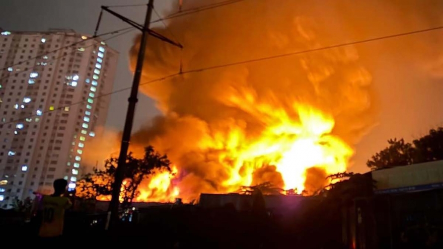 VOV.VN - Vào khoảng 0h40 rạng sáng 30/3, một vụ hỏa hoạn lớn đã bùng phát tại kho chứa đồ gỗ nằm cuối đường Phạm Tu, đối diện Bệnh viện K Tân Triều, thuộc phường Thanh Liệt (Hà Nội).