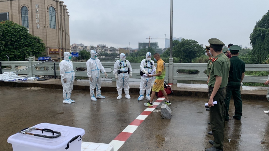 VOV.VN - Phòng Quản lý xuất nhập cảnh, Công an tỉnh Quảng Ninh phối hợp Công an huyện Hải Hà và Đồn Biên phòng cửa khẩu quốc tế Móng Cái vừa tiến hành bàn giao 2 người Trung Quốc vi phạm pháp luật Việt Nam về xuất nhập cảnh.