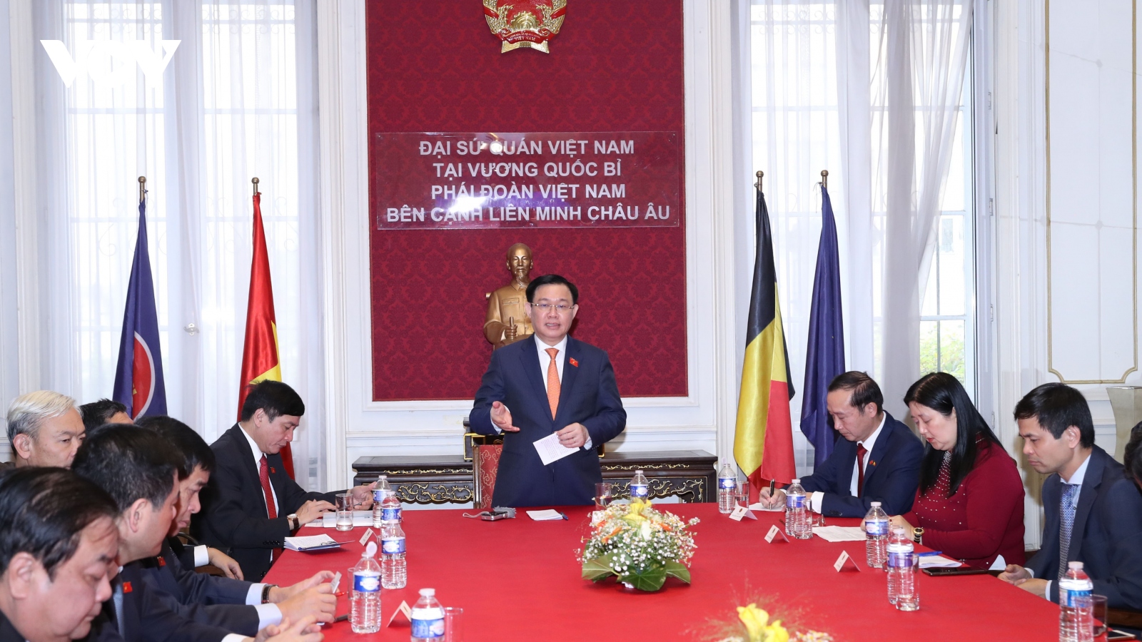 VOV.VN - Sáng nay (9/9), tại trụ sở Đại sứ quán Việt Nam tại Bỉ, Chủ tịch Quốc hội Vương Đình Huệ đã dự lễ khánh thành khu tưởng niệm Chủ tịch Hồ Chí Minh; làm việc với cán bộ, nhân viên Đại sứ quán và gặp gỡ cộng đồng người Việt tại Bỉ, nhóm trí thức trẻ từ nhiều nước khu vực châu Âu.