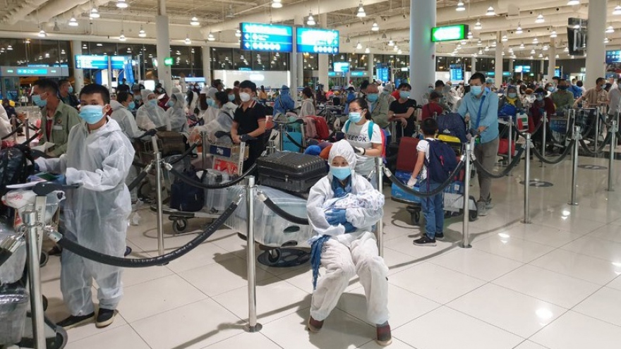 VOV.VN - Ngay sau khi hạ cánh xuống sân bay quốc tế Cam Ranh, những người tham gia các chuyến bay đã được giám sát y tế và cách ly tập trung theo đúng quy định.