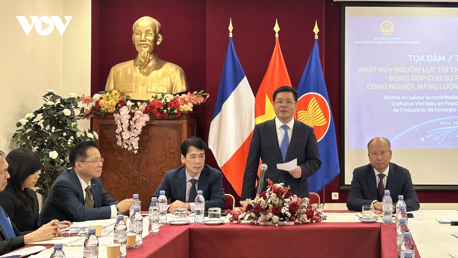 VOV.VN - Ngày 4/12, tại Đại sư quán Pháp ở thủ đô Paris, Bộ trưởng Bộ Công Thương Nguyễn Hồng Diên cùng Đại sứ Việt Nam tại Pháp Đinh Toàn Thắng đã đồng chủ trì buổi tọa đàm “Phát huy nguồn lực trí thức và doanh nhân kiều bào đóng góp cho sự phát triển ngành công nghiệp, năng lượng và thương mại Việt Nam”.