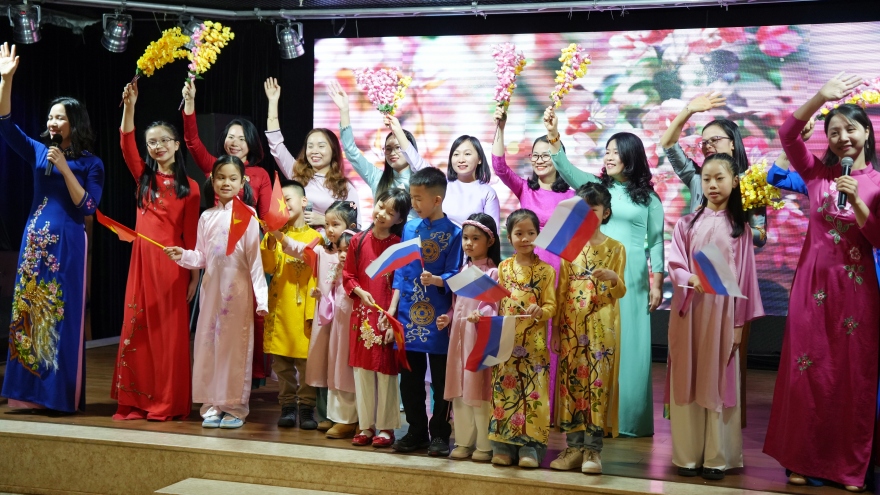 VOV.VN - Tối 3/2, tại Tổ hợp Thương mại Hà Nội - Moscow - INCENTRA, hơn 600 người Việt tại Liên bang Nga tưng bừng tham dự Chương trình Xuân quê hương Tết Giáp Thìn 2024. Chương trình do Đại sứ quán Việt Nam, Hội người Việt Nam và Hiệp hội các nhà doanh nghiệp Việt Nam tại Liên bang Nga phối hợp tổ chức.