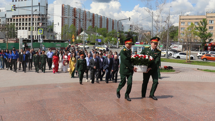VOV.VN - Ngày 17/5, hướng tới kỷ niệm 134 năm ngày sinh Chủ tịch Hồ Chí Minh, Đại sứ quán Việt Nam tại Nga đã tổ chức lễ dâng hoa tại tượng đài Bác ở thủ đô Moscow, Liên bang Nga.