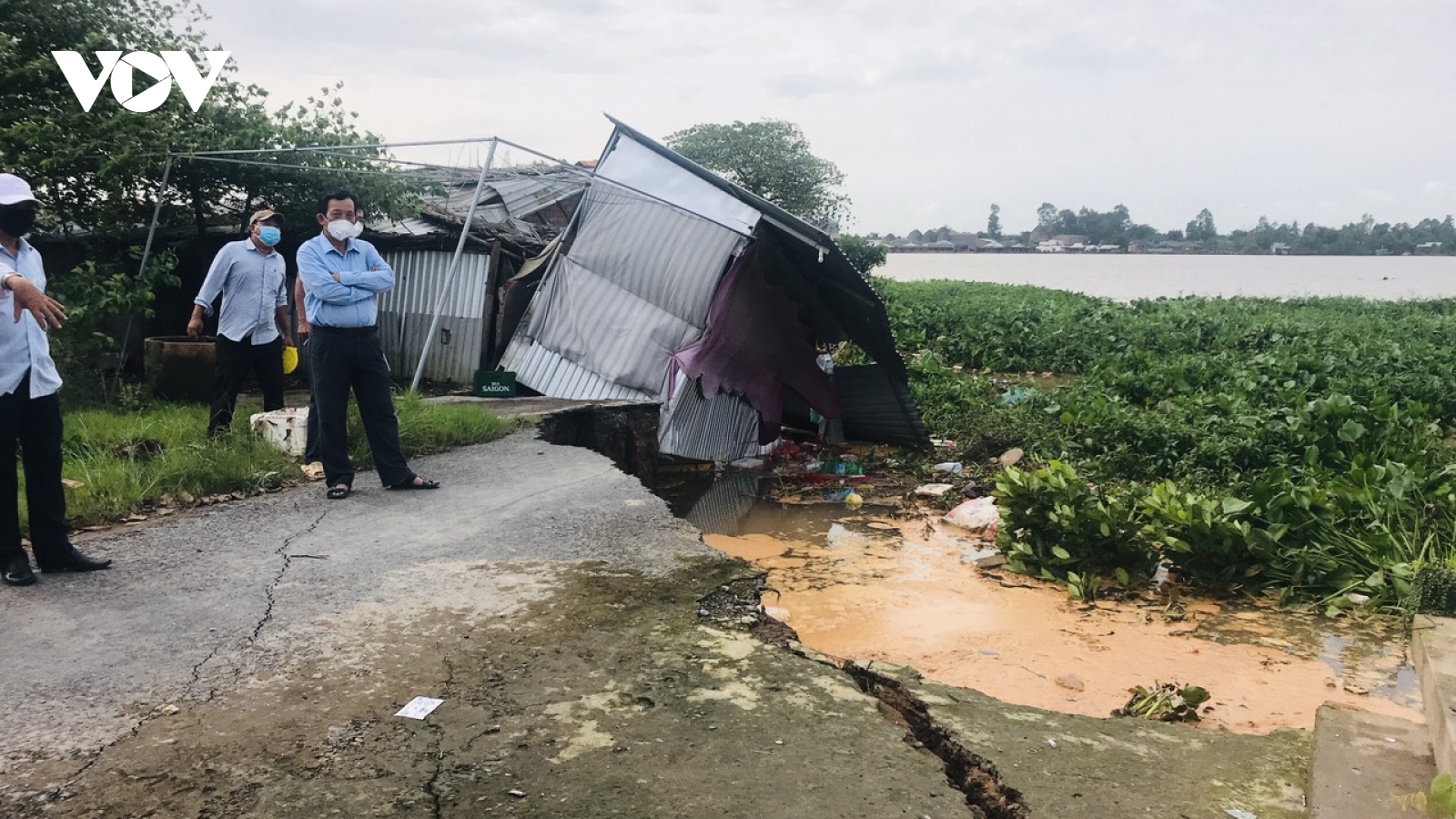 VOV.VN - Do sự thay đổi dòng chảy đã làm sạt lở một khu vực lớn tại cồn Phú Đa, thuộc Tổ nhân dân tự quản số 15, ấp Phú Bình xã Vĩnh Bình (huyện Chợ Lách, tỉnh Bến Tre).