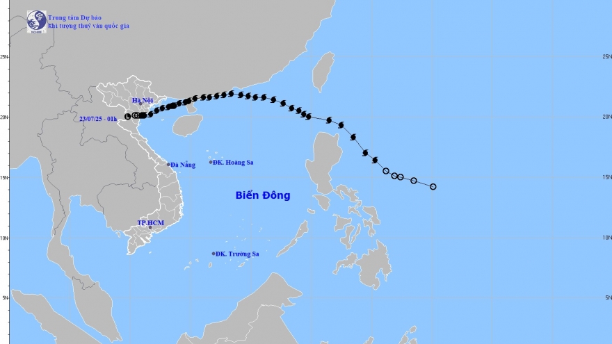 VOV.VN - Theo Trung tâm dự báo Khí tượng Thủy văn quốc gia, đêm 22/7, áp thấp nhiệt đới (suy yếu từ cơn bão số 3) đã suy yếu thành một vùng áp thấp trên khu vực biên giới Việt Nam - Lào.