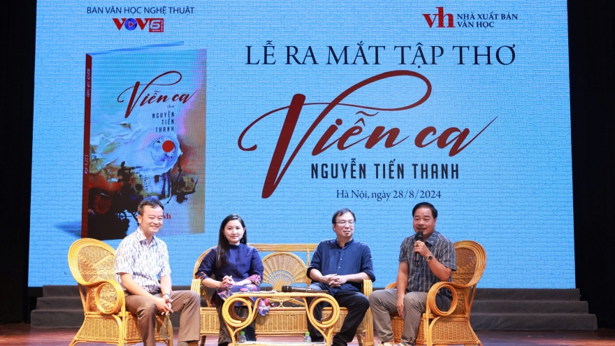 VOV.VN - Sáng nay 28/8, tại Nhà hát Đài Tiếng nói Việt Nam, 58 Quán Sứ, Hà Nội, Nhà xuất bản Văn học phối hợp với Ban Văn học nghệ thuật VOV6 tổ chức ra mắt tập thơ “Viễn ca” của nhà thơ Nguyễn Tiến Thanh, Chủ tịch Hội đồng thành viên, Tổng Giám đốc Nhà xuất bản Giáo dục Việt Nam.