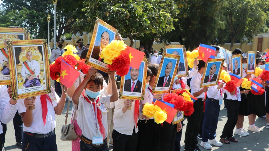 VOV.VN - Hôm nay (21/12) Chủ tịch nước Nguyễn Xuân Phúc dẫn đầu Đoàn đại biểu cấp cao nước ta đã đến thủ đô Phnom Penh, bắt đầu chuyến thăm chính thức Vương quốc Campuchia từ ngày 21 - 22/12/2021.
