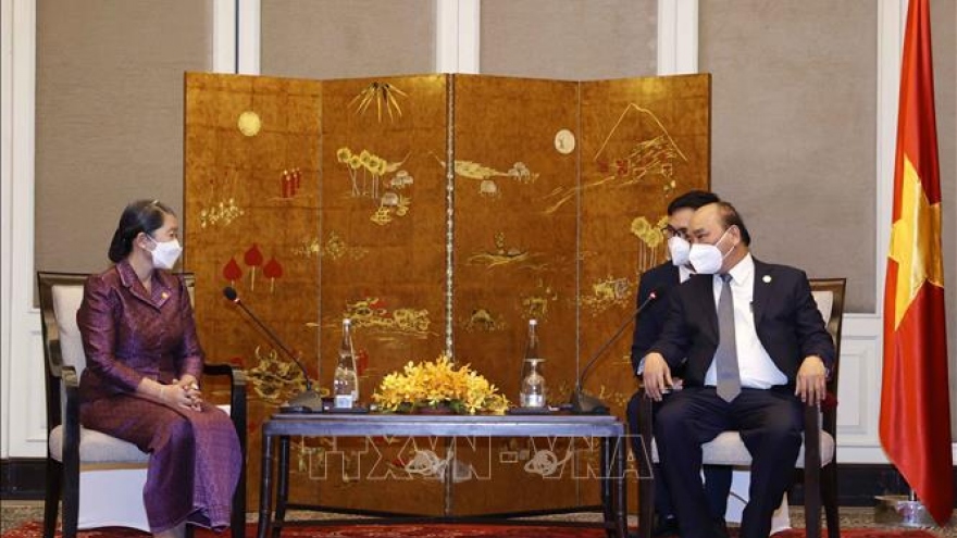 VOV.VN - Trong khuôn khổ chuyến thăm cấp Nhà nước tới Vương quốc Campuchia, chiều ngày 21/12/2021, Chủ tịch nước Nguyễn Xuân Phúc đã tiếp bà Men Sam On, Phó Thủ tướng, Bộ trưởng Bộ Quan hệ Quốc hội, Thượng viện và Thanh tra Campuchia, Chủ tịch hội Hữu nghị Campuchia – Việt Nam.