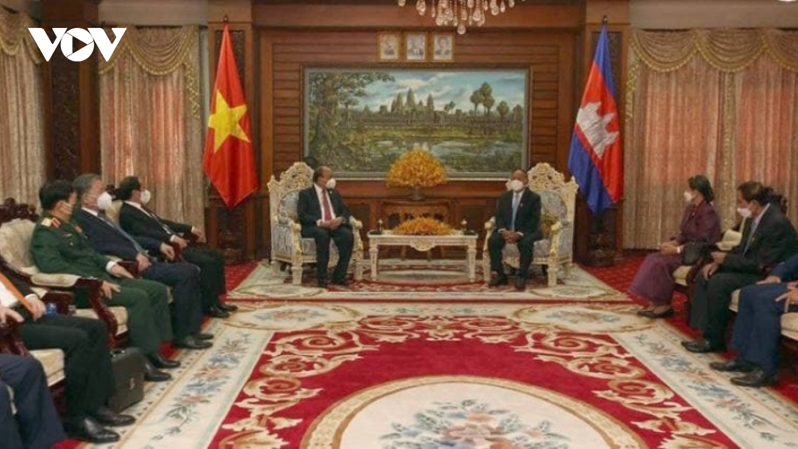 VOV.VN - Nhận lời mời của Quốc vương Campuchia Norodom Sihamoni, sáng ngày 21/12/2021, Chủ tịch nước CHXHCN Việt Nam Nguyễn Xuân Phúc và đoàn đại biểu cấp cao Nhà nước Việt Nam đã đến thủ đô Phnôm Pênh, bắt đầu chuyến thăm cấp Nhà nước tới Vương quốc Campuchia.