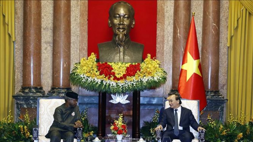 VOV.VN - Chiều 8/12, tại Phủ Chủ tịch, Chủ tịch nước Nguyễn Xuân Phúc tiếp Chủ tịch Thượng viện Cộng hòa Pháp Gérard Larcher dẫn đầu đoàn đại biểu Thượng viện Pháp thăm chính thức Việt Nam.
