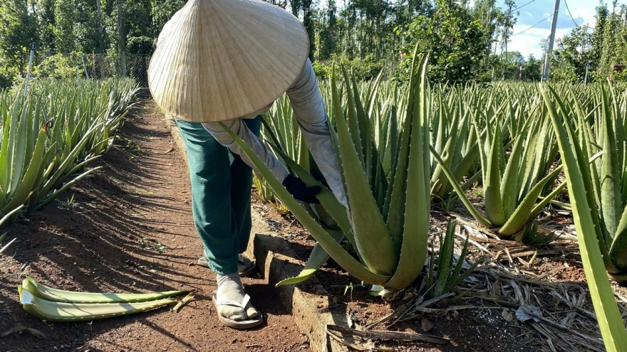 VOV.VN - Người trồng nha đam tại huyện Châu Đức, tỉnh Bà Rịa – Vũng Tàu cho biết, gần 2 tháng qua, sản phẩm bẹ nha đam tươi được các thương lái, công ty chế biến nước giải khát thu mua tại ruộng với giá khá cao, người trồng nha đam phấn khởi.