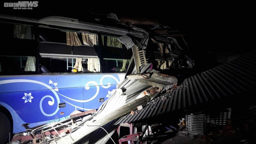 VOV.VN - Chiếc xe khách giường nằm mang biển số Thừa Thiên Huế khi đi qua địa phận tỉnh Phú Yên đã tông sập nhà dân, khiến tài xế tử vong và 3 hành khách bị thương.