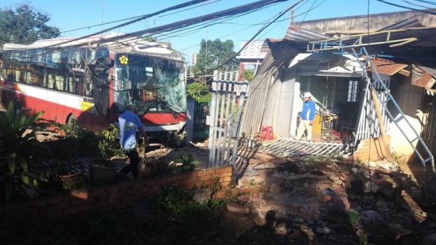 VOV.VN - Xe khách Thành Bưởi chở hàng chục khách chạy tuyến Sài Gòn- TP Đà Lạt, khi đến khu vực huyện Di Linh (Lâm Đồng) thì lao vào nhà dân khiến nhiều người hoảng hốt.
