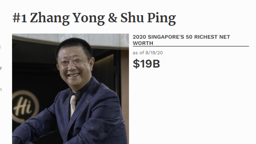 VOV.VN - Người giàu nhất Singapore hiện nay là ông Zhang Yong, người được mệnh danh là "vua lẩu" Haidilao, với khối tài sản 19 tỷ USD, theo ước tính của Forbes.
