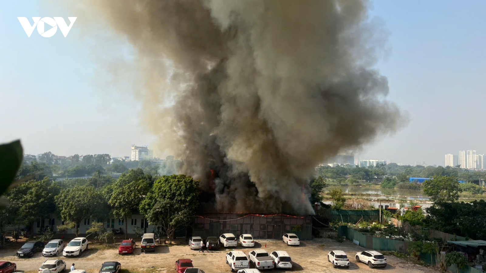 VOV.VN - Đêm 19/12, tại một nhà kho chứa lốp ô tô trên phố Nguyễn Cảnh Dị (phường Định Công, quận Hoàng Mai, Hà Nội) xảy ra cháy lớn, tạo thành cột khói cao hàng vài chục mét.