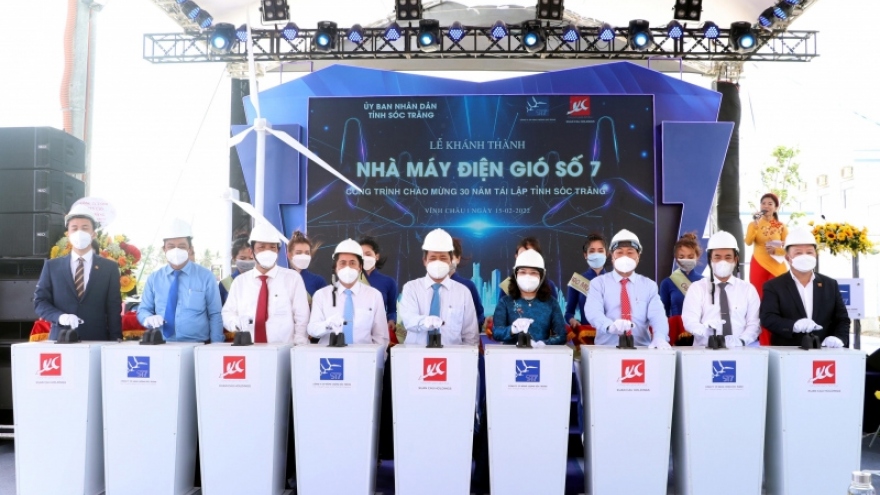 VOV.VN - Sau hơn 1 năm khẩn trương thi công, ngày 15/2, Ủy ban nhân dân tỉnh Sóc Trăng phối hợp với Công ty Cổ phần Năng lượng Sóc Trăng tổ chức Lễ khánh thành Nhà máy điện gió số 7 tại Ấp Âu Thọ B, xã Vĩnh Hải, thị xã Vĩnh Châu, tỉnh Sóc Trăng.