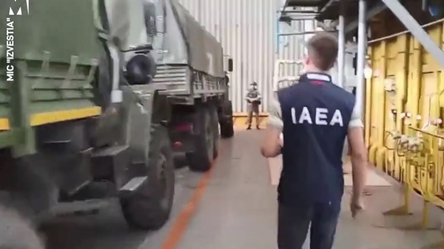 VOV.VN - Video sau cho thấy xe tải quân sự phủ bạt với ký hiệu Z và lính gác Nga cầm súng AK bên trong nhà máy điện hạt nhân Zaporizhzhia ở Ukraine. Các thanh sát viên IAEA (Cơ quan Năng lượng Hạt nhân Nguyên tử Quốc tế) đã có mặt tại đây.