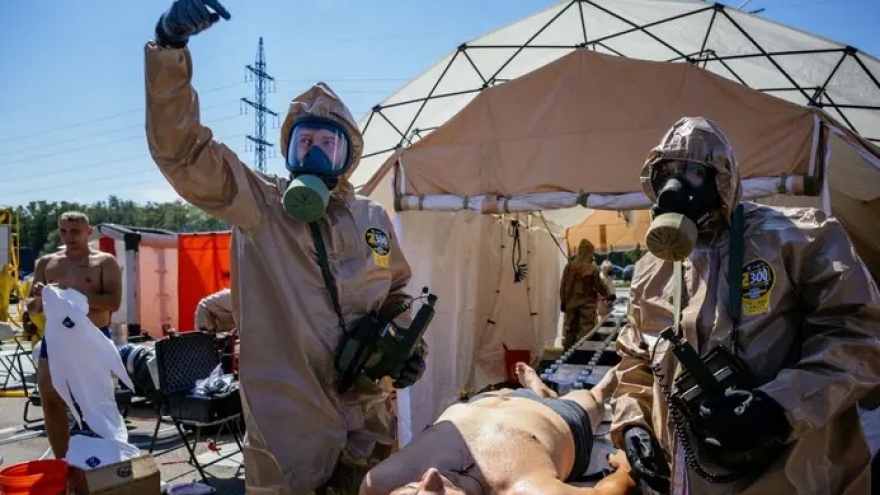 VOV.VN - Lực lượng cứu hộ của Bộ Tình trạng khẩn cấp Ukraine vừa diễn tập ở thành phố Zaporizhzhia để chuẩn bị cho kịch bản tai nạn hạt nhân xảy ra ở thành phố điện hạt nhân tại thành phố này.