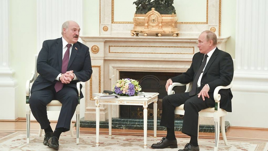 VOV.VN - Ngày 9/9, tại Điện Kremlin, Tổng thống Nga Putin hội đàm với Tổng thống Belarus Lukashenko nhân chuyến thăm làm việc của ông đến Moscow. Chủ đề chính trong cuộc gặp của 2 nhà lãnh đạo là phát triển nhà nước Liên minh Nga-Belarus, theo văn kiện đã được ký kết từ năm 1999.
