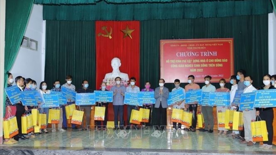VOV.VN - Sáng 16/4, tại Thanh Hóa diễn ra Hội nghị triển khai công tác hỗ trợ xây dựng nhà ở cho đồng bào công giáo nghèo sinh sống trên sông trên địa bàn tỉnh và trao số tiền 2,5 tỷ đồng hỗ trợ cho 51 hộ đồng bào công giáo sinh sống trên sông tại huyện Yên Định để ổn định cuộc sống.