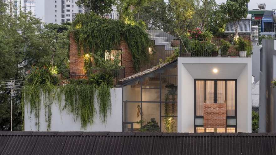Nhờ có sân thượng trồng cây mà nhà phố xanh y như nhà vườnVOV.VN - Thừa nhận việc sử dụng không hiệu quả mái nhà, cũng như việc thiếu khoảng xanh ở các đô thị nên gia chủ đã đưa cả vườn cây vào tầng thượng.
