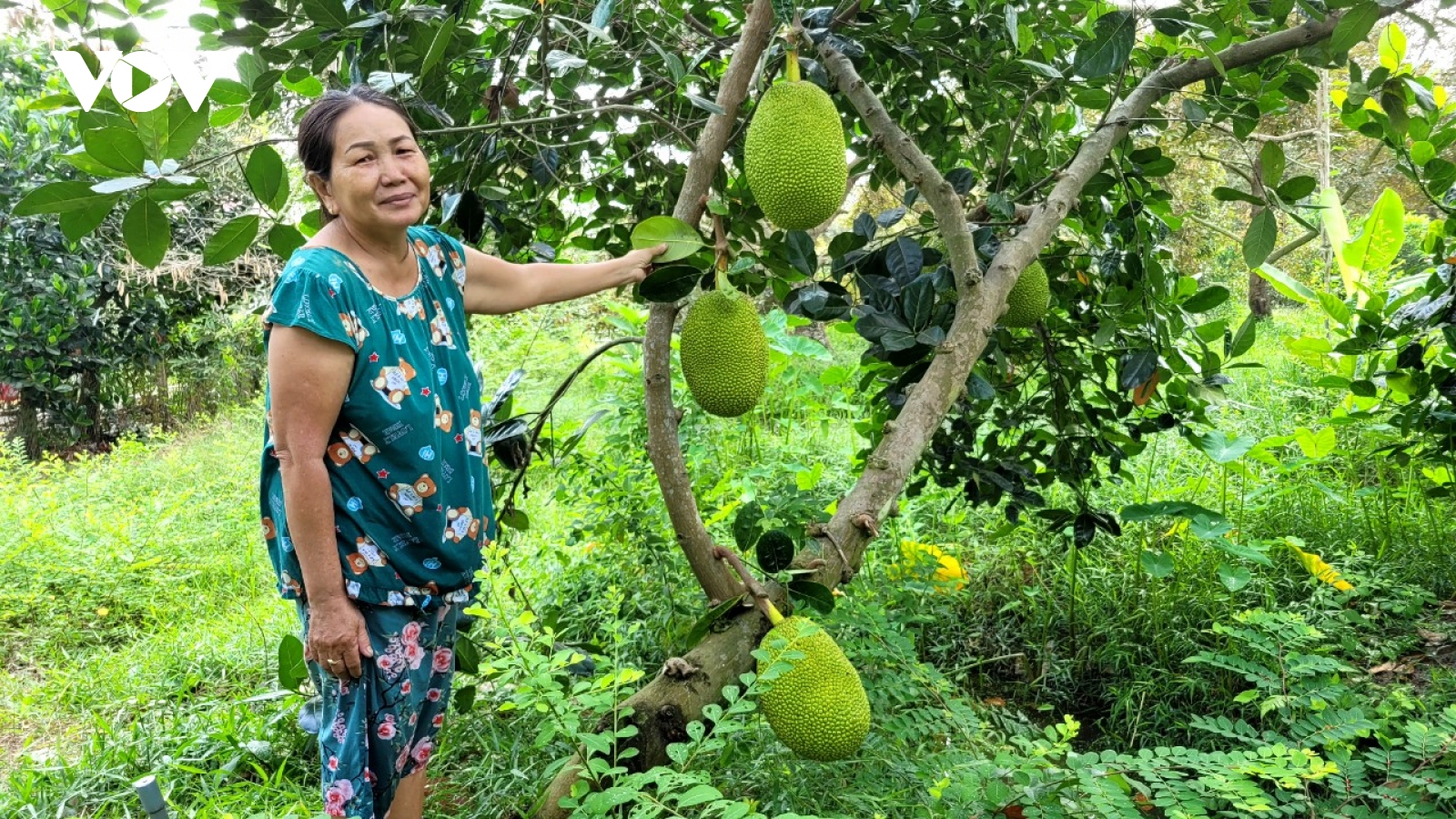 VOV.VN - Hiện nay, tuy vào cao điểm của khô hạn, nước mặn xâm nhập sâu nhưng nhiều nhà vườn tỉnh Tiền Giang vẫn có nguồn thu nhập cao từ mô hình trồng cây mít. Đây là một trong 03 loại cây ăn quả cho hiệu quả kinh tế cao nhất tỉnh Tiền Giang hiện nay.
