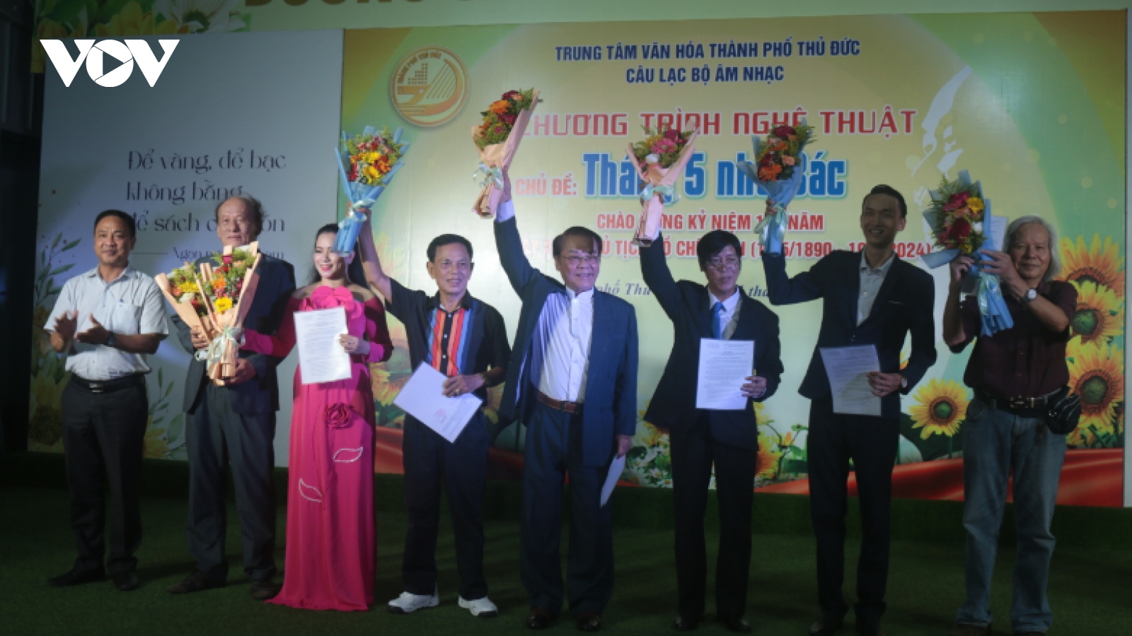 VOV.VN - Tối 11/5, Trung tâm văn hoá TP. Thủ Đức, TP.HCM tổ chức chương trình văn nghệ với chủ đề “Tháng 5 nhớ Bác” nhân kỷ niệm 134 năm ngày sinh Chủ tịch Hồ Chí Minh và ra mắt Ban chủ nhiệm CLB Âm nhạc TP. Thủ Đức.