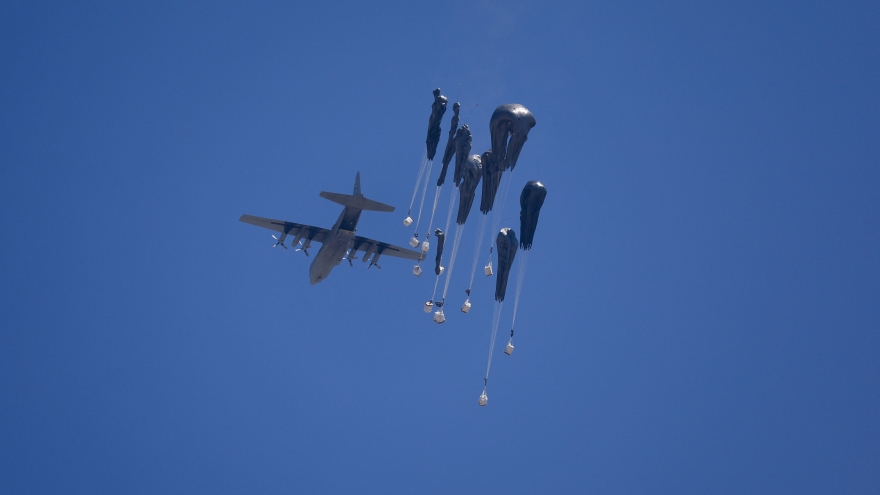 VOV.VN - Chiều 27/7, máy bay vận tải của Các Tiểu vương quốc Ả rập thống nhất (UAE) và Jordan đã bắt đầu thả hàng cứu trợ nhân đạo xuống Gaza, đánh dấu nỗ lực quốc tế đáng chú ý mới nhất nhằm cải thiện tình hình nhân đạo đang ở mức cực kỳ tồi tệ ở dải Gaza do chính sách bao vây và tấn công quân sự của Israel gây ra.
